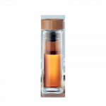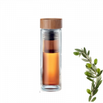 Double Wall Borosilicate Glass Bottle with Bamboo Lid & Tea Infuser