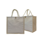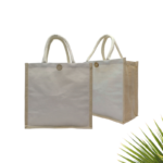 Introducing our Juco White Bag with Natural Gusset & Spine, Button, and Long Handles – a unique, eco-friendly accessory that beautifully marries the elegance of white with the rustic charm of natural gusset and spine. This versatile bag offers a stylish design and practical features.
